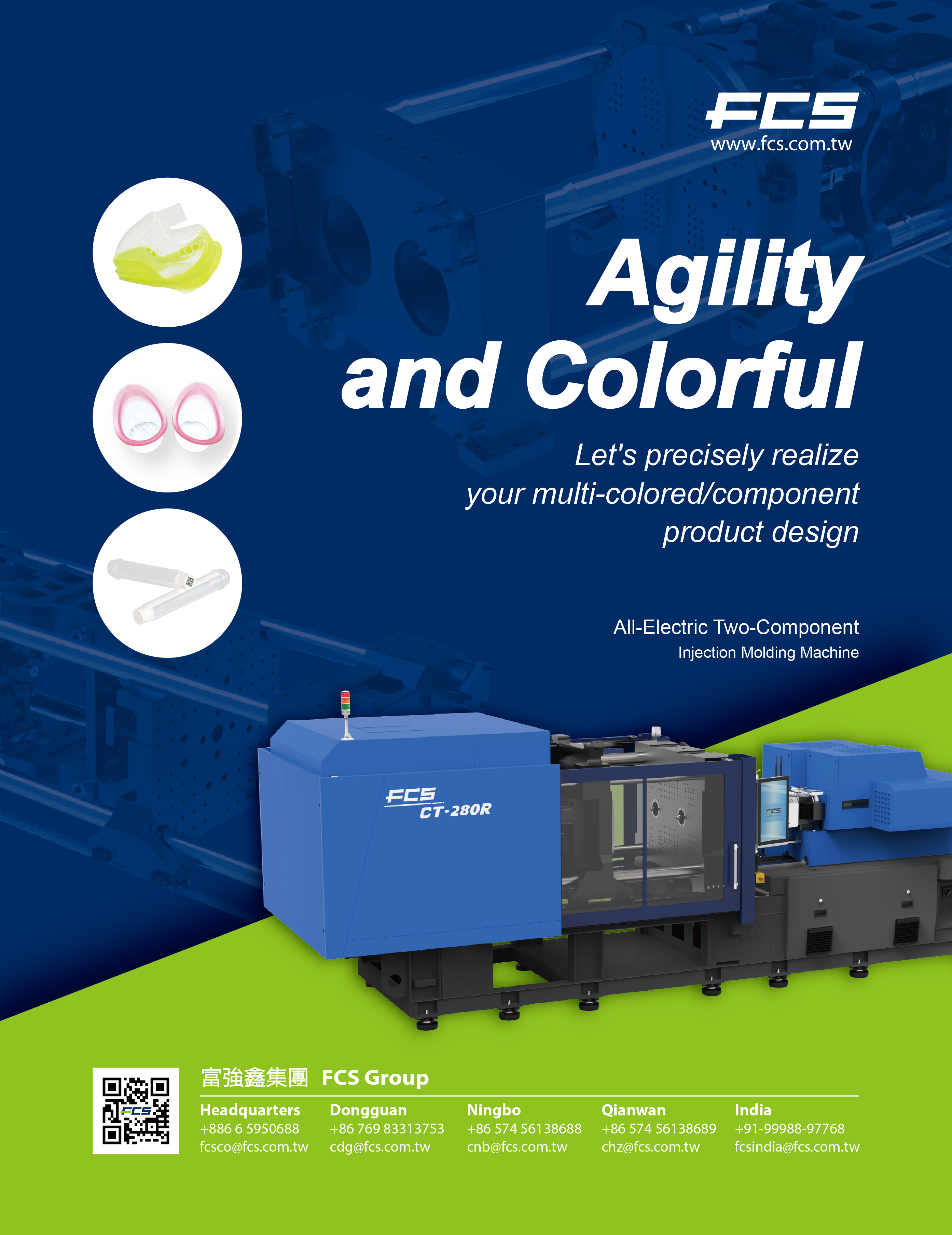 Máy ép phun bàn xoay hoàn toàn bằng điện 2K dòng FB-Re là model hai thành phần hoàn toàn bằng điện kiểu xoay của FCS, phù hợp cho các sản phẩm hai màu và nhiều màu như vỏ đèn ô tô và hàng tiêu dùng. Lực kẹp dao động từ 160 đến 1.900 tấn.