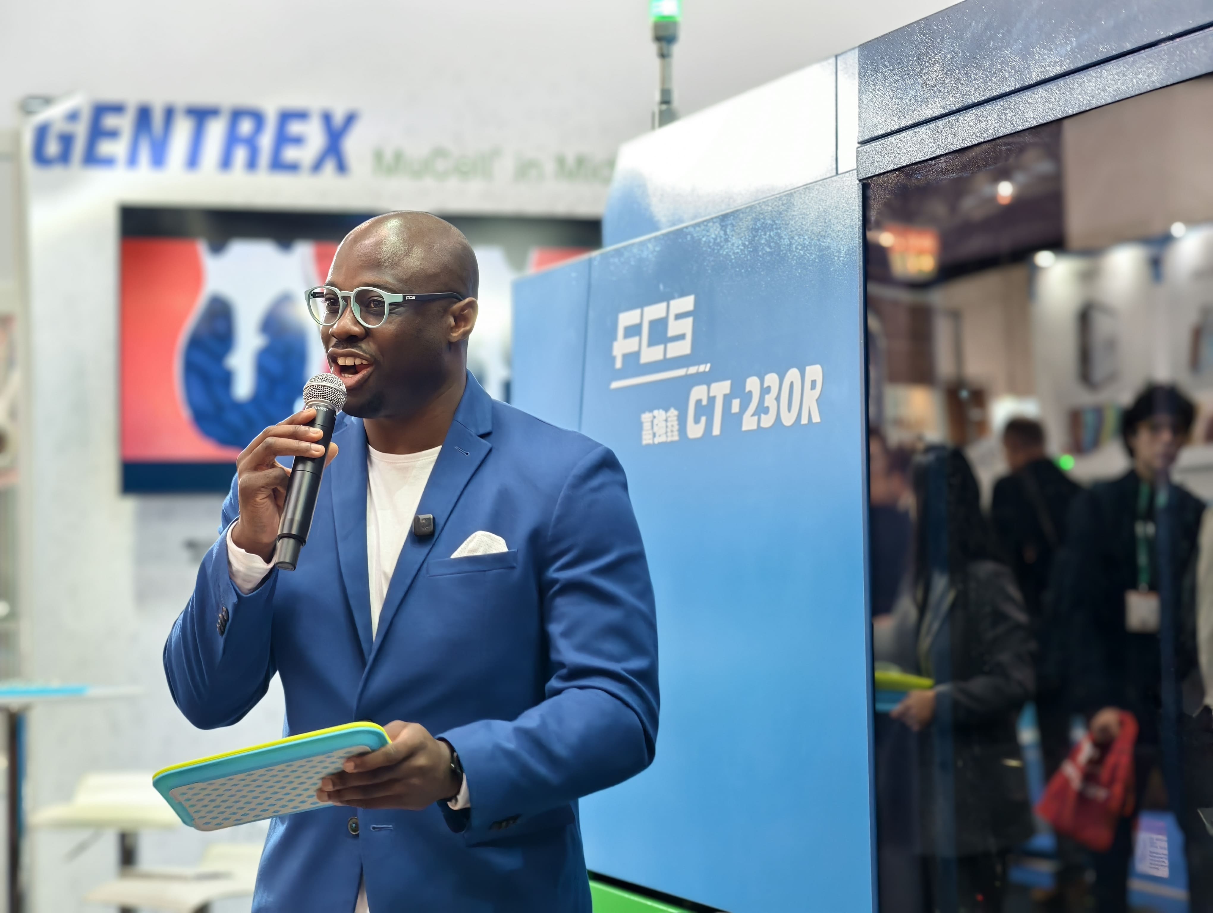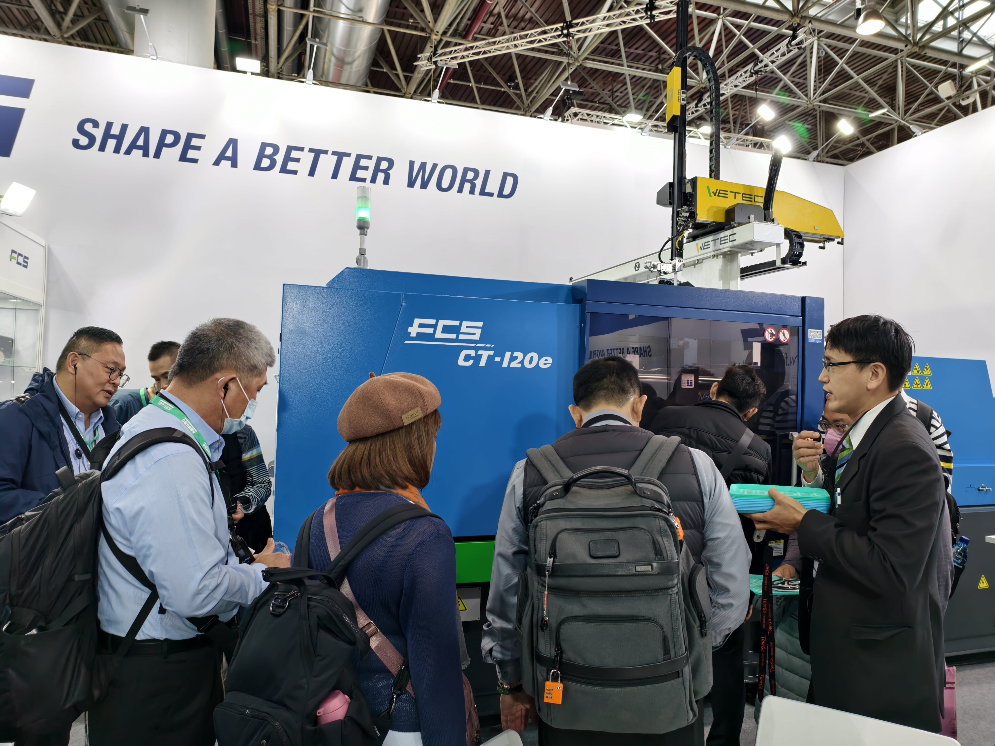 FCS đã sử dụng máy ép phun hai màu hoàn toàn bằng điện CT-230R để trình diễn chu kỳ sản xuất hàng loạt tự động trong 20 giây đối với khay hai màu PP + TPE , thể hiện đầy đủ thế mạnh của FCS trong lĩnh vực ép phun đa vật liệu 2K , cân bằng giữa năng suất và tính bền vững.